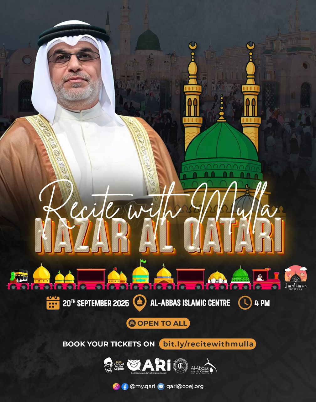Recite with Mulla Nazar Al Qatari & UmAimen Books CoEJ QARI presents a spiritually moving evening with Mulla Nazar Al Qatari & UmAimen Books in Rabi ul Awwal. In these days of mourning, our hearts yearn to be in Jannatul Baqi. Join us on the 20th of September in reflection, remembrance, and love for the Ahlul Bayt […]