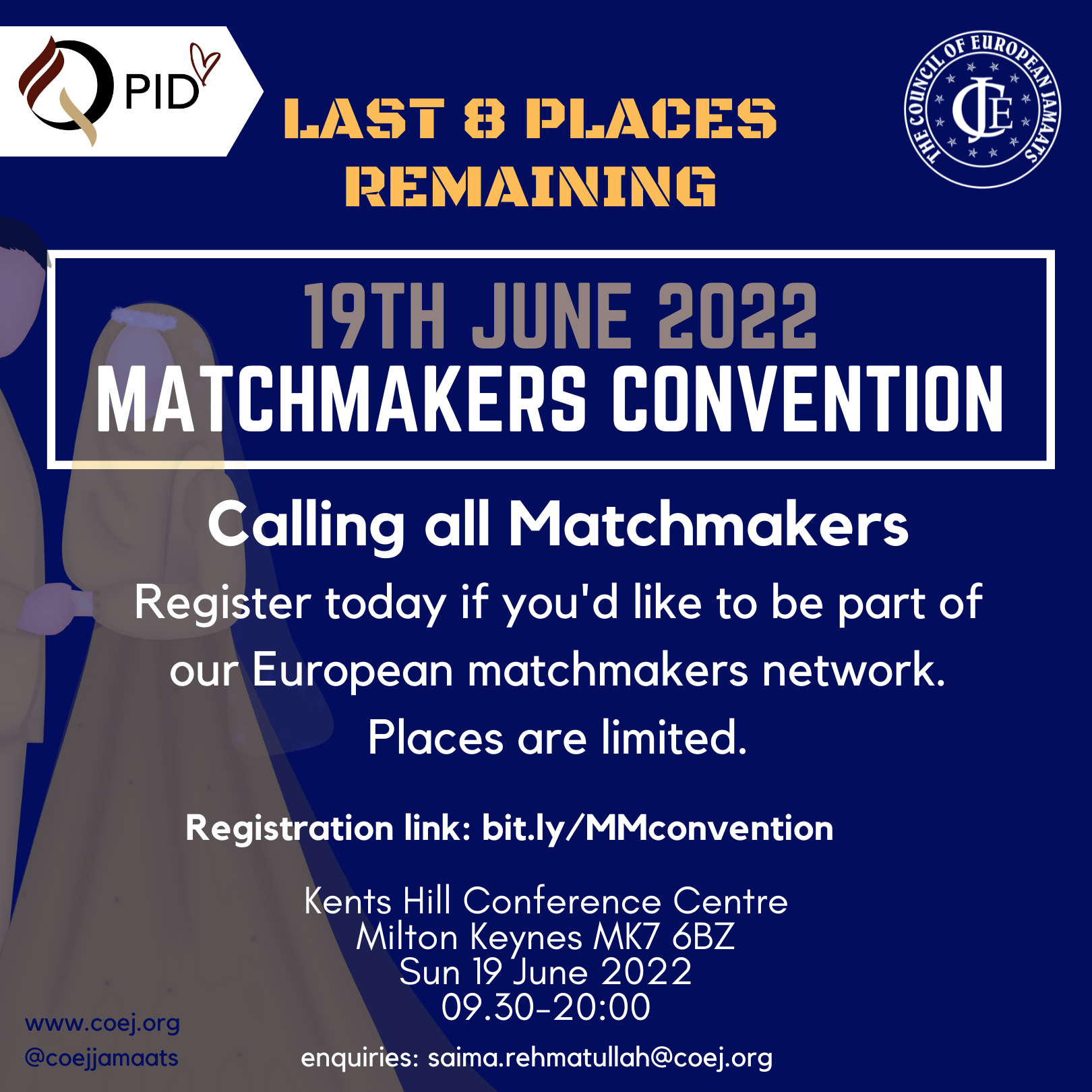 Over the next three years, the CoEJ Marriage Board has ambitious plans to support member jamaats with projects and initiatives that focus on Pre-Marriage, Married Life and Post-Marriage. Currently, we are seeking to expand our team of dedicated volunteers and invite anyone with a passion to serve the community to get in contact. We are also […]