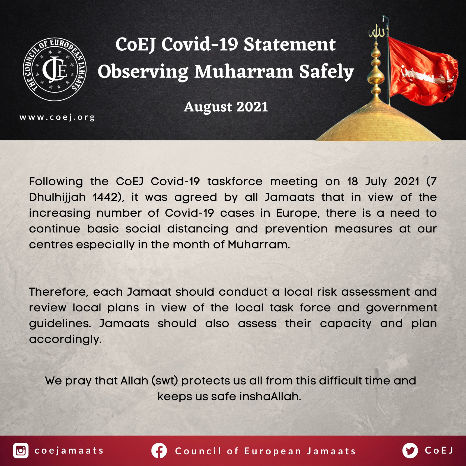 CoEJ Covid-19 Statement : Observing Muharram Safely