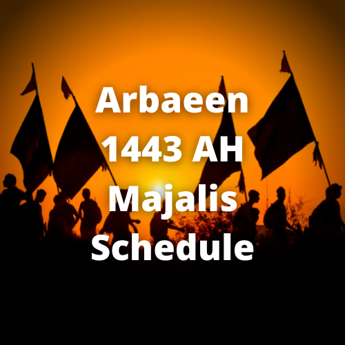CoEJ is the umbrella organisation for 16 MKSI Jamaats across Europe. Below is the list of speakers and timings for majalis taking place during the days leading up to the Arbaeen of 10th Muharram 1443 AH at CoEJ Jamaats. To download the PDF file for the above schedule, please click here.