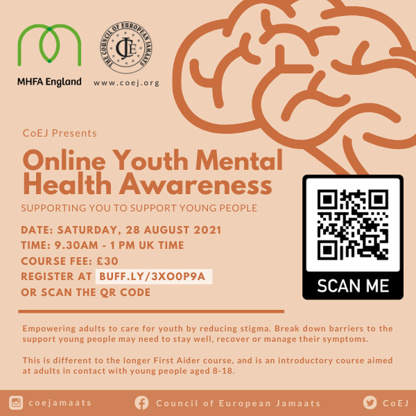 CoEJ held its first Adult Mental Health First Aid course Online which was facilitated by Brother Ammar Farishta of Fitrus Training and CoEJ Councillor Mariam Hassam of Revive VSG. The course took place over the course of 4 days from 6th – 9th March 2021. The workshop was completely overbooked and alhamdulillah received highly […]