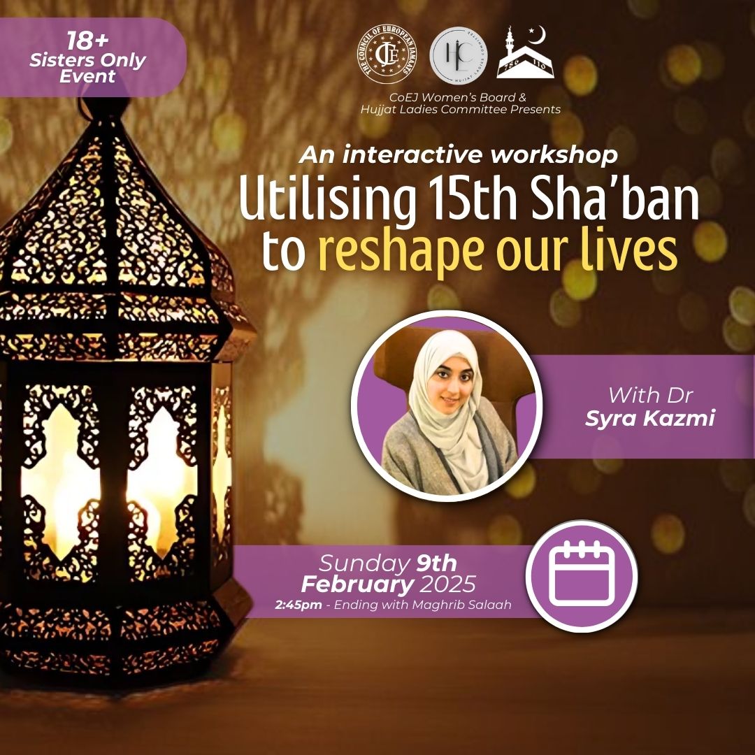 Utilising 15th Shabaan to reshape our lives – Interactive workshop Key Details IMPORTANT: Kindly remember to bring a journal & pen with you Key Details:– Sunday 9th February 2025– Begins at 2:45pm – Ending with Maghrib Salaah- Event at Hujjat Stanmore (Gents hall)- Tabarruk will be served- £2.50 pp, register below- 18+ Sisters Only Event About […]