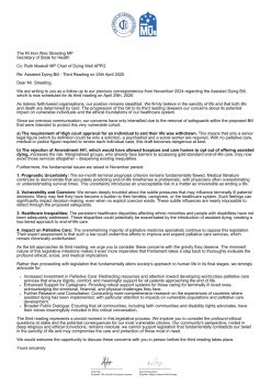 Voicing our concerns regarding the third reading of the UK Assisted Dying Bill