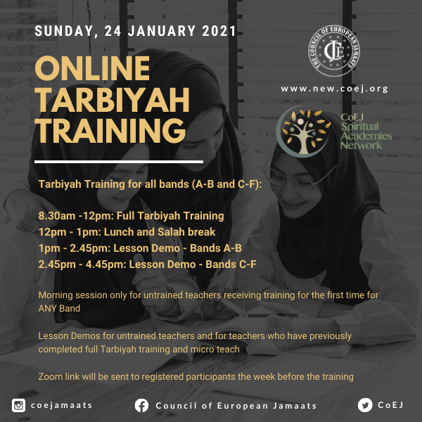 Due to high demand, CoEJ SAN is excited to launch this second Online Tarbiyah Training!