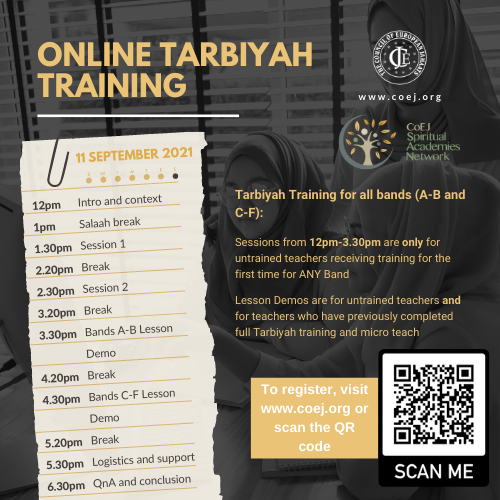 With the Madrasah new term starting, CoEJ SAN is excited to launch its fourth Online Tarbiyah Training!