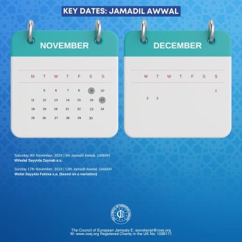 - Saturday 9th November, 2024 | 5th Jamadil Awwal, 1446AH, Wiladat Sayyida Zaynab a.s.