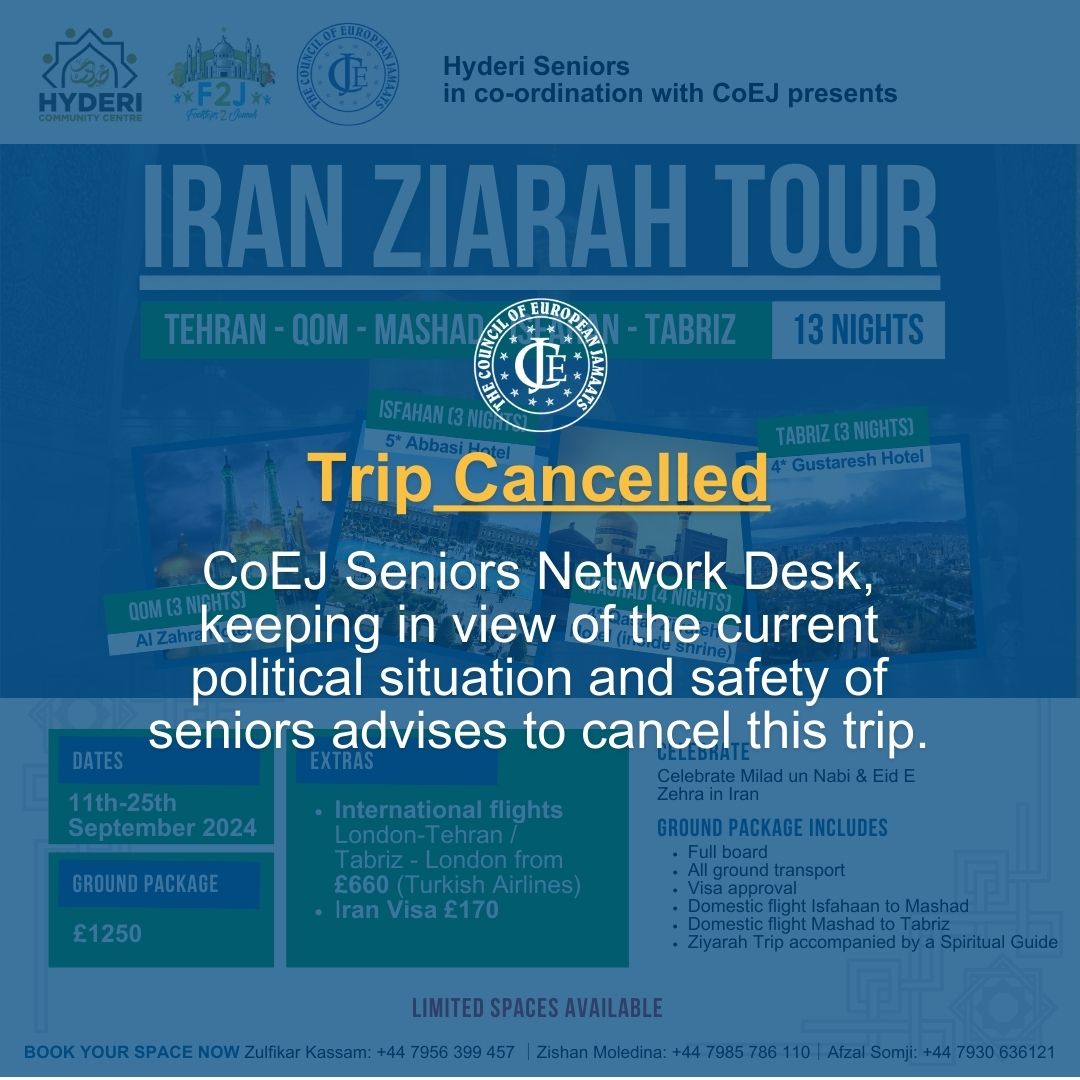 Posted on15 Aug CoEJ Seniors Network Desk, keeping in view of the current political situation and safety of seniors advises to cancel this trip. Thank you for understanding.
