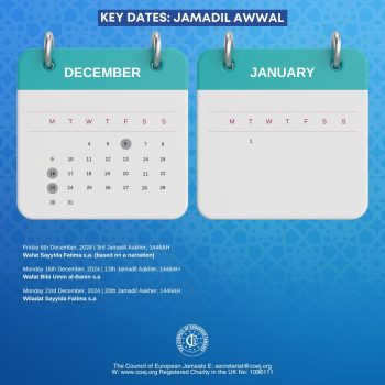 • Monday 23rd December, 2024 | 20th Jamadil Aakher, 1446AH Wiladat Sayyida Fatima s.a