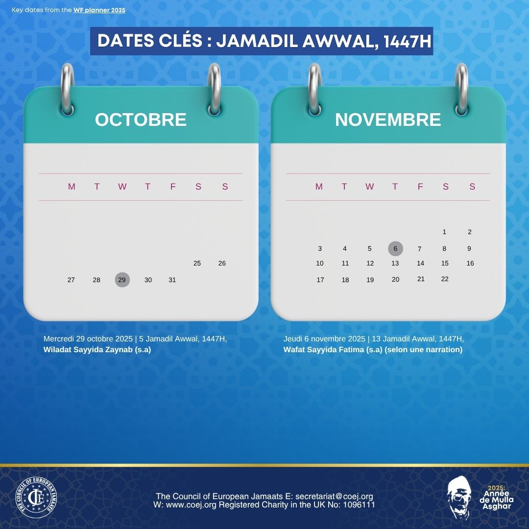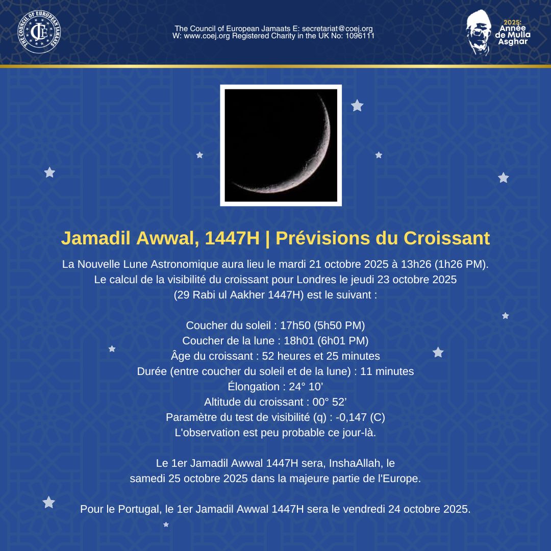 1st Jamadil Awwal 1447AH will InshaAllah be on Saturday 25 October 2025 in most of Europe.