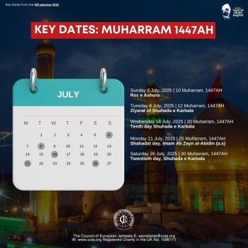 Wednesday 16 July, 2025 | 20 Muharram, 1447AH, Tenth day of Shuhada e Karbala