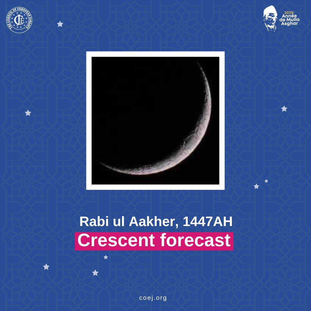 1st Rabi ul Aakher 1447AH will InshaAllah be on Thursday 25 September 2025 in Europe following the completion of 30 days of Rabi ul Awwal