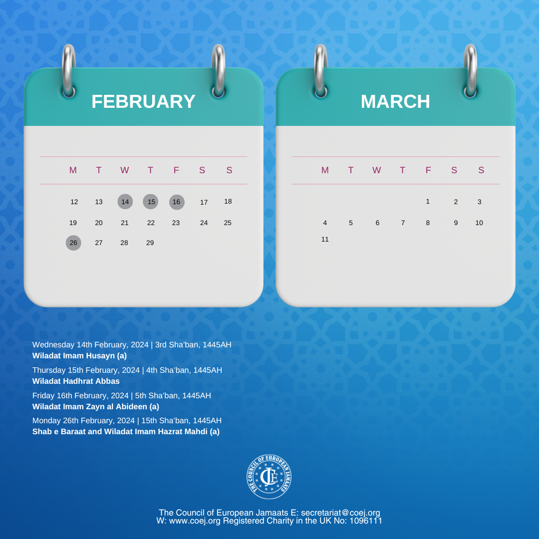 Wednesday 14th February, 2024 | 3rd Sha’ban, 1445AH- Wiladat Imam Husayn (a)