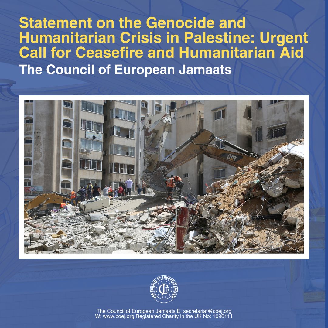 CoEJ appeals for an immediate ceasefire and unhindered access to vital humanitarian aid to the Gaza Strip, as well as calling for an end to the hostilities in the West Bank where Palestinian towns and refugee camps are routinely raided with people detained without charges and due process. Over 300 Palestinians have been killed in the West Bank over the last 10 weeks. Our organisation offers heartfelt prayers for the restoration of peace and dignity for the people of Palestine. We sincerely supplicate for the swift reappearance of our awaited saviour.