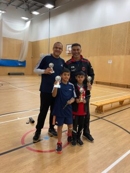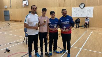 As the semi final games ended, 3 of the 4 courts were packed away and benches were placed around the finals court. The atmosphere was more electric than when England reached the final of Euro 2020! The umpire took his position and invited the finalists of the age 11-16 category onto the court. These were Aarif and Suhail Merali versus Arif and Mohammedali Chandoo.