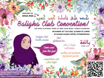 ☪️ The Baligha Club Team is pleased to announce our first ever Baligha Club National Convention, honouring the Ahlul Kisa (as)!🌸 The event is open to girls throughout the UK who are currently in years 3, 4, 5 or 6 at school. Each Baligha girl can attend with one guest which should be their mum or a female guardian (aged 18 years or over).🎟️ Tickets are available at the subsidised cost of just £6 per attendee, which includes a ‘desi’ style afternoon tea, craft materials for all workshops and a free raffle! We also have an art competition and a poetry competition for Baligha girls to take part in, with prizes for winners!⏰ Limited places left! Registration via Eventbrite: https://balighaconvention.eventbrite.co.uk/