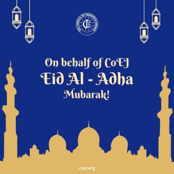 On behalf of the office bearers and all trustees of CoEJ, I would like to extend my warmest wishes to Muslims across Europe and around the world on this auspicious occasion of Eid al-Adha. This special holiday is a time to honour the sacrifice, resolve, and commitment to God demonstrated by prophet Ibraham (peace be upon him).
