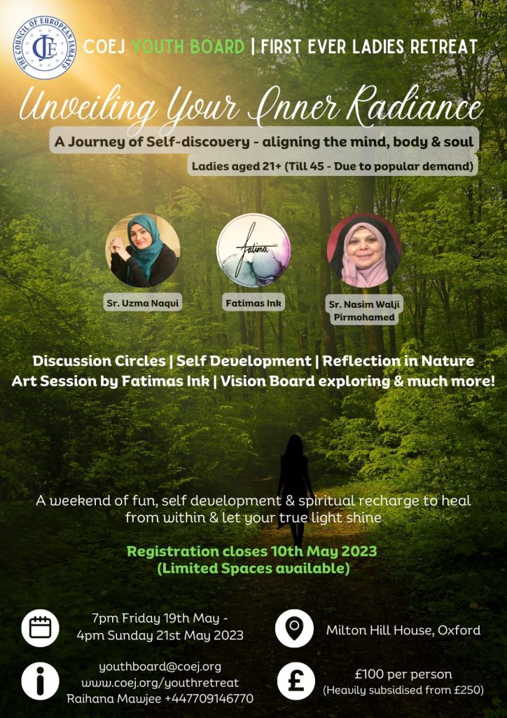 And that’s not all! The retreat will take place at the stunning Milton Hill House in Oxford, where you will be accommodated in comfortable, two-bed shared rooms and provided with halal food, including a delicious three-course meal each night. Plus, the original price of £250 per person has been heavily subsidised by COEJ, so you’ll only have to pay £100.